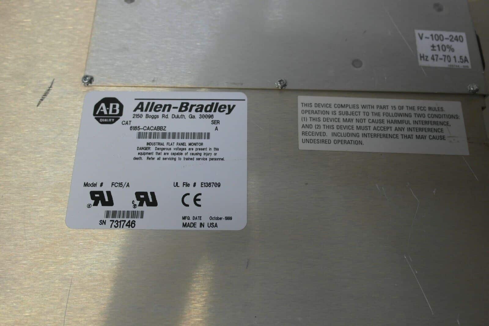 Allen-Bradley Industrial Flat Panel Monitor 6185 CACABBZ fc15/a 15inch touchscre